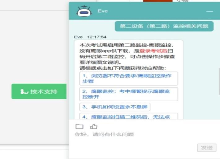 (十) 在考试过程中如遇到设备或操作等技术问题,可点击“技术支持”获取帮助。