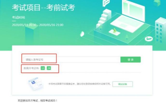请注意:一旦完成登录,考试系统将全屏锁定电脑的操作界面。强烈建议在输入准考证号进入考试前,进行设备调试,确认考试设备的可用情况。
