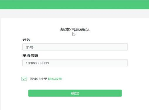(六)完成登录后,考生确认自己的基本信息,确认无误后点击确定按钮继续。