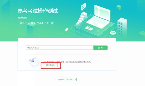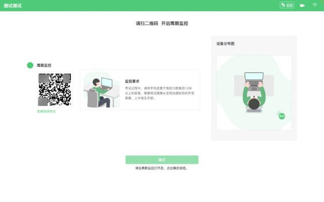 考生可预先通过https://eztest.org/home/entry/ 页面的调试功能,分别验证自己准备的考试设备、鹰眼设备的可用性,如不能正常使用可及时更换。