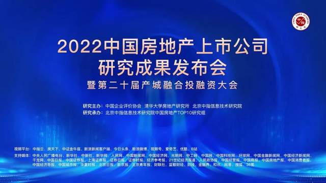 2022年5月20日,由中国企业评价协会、清华大学房地产研究所、北京中指信息技术研究院主办,北京中指信息技术研究院中国房地产TOP10研究组承办的“2022中国房地产上市公司研究成果发布会暨第二十届产城融合投融资大会”在线举行。