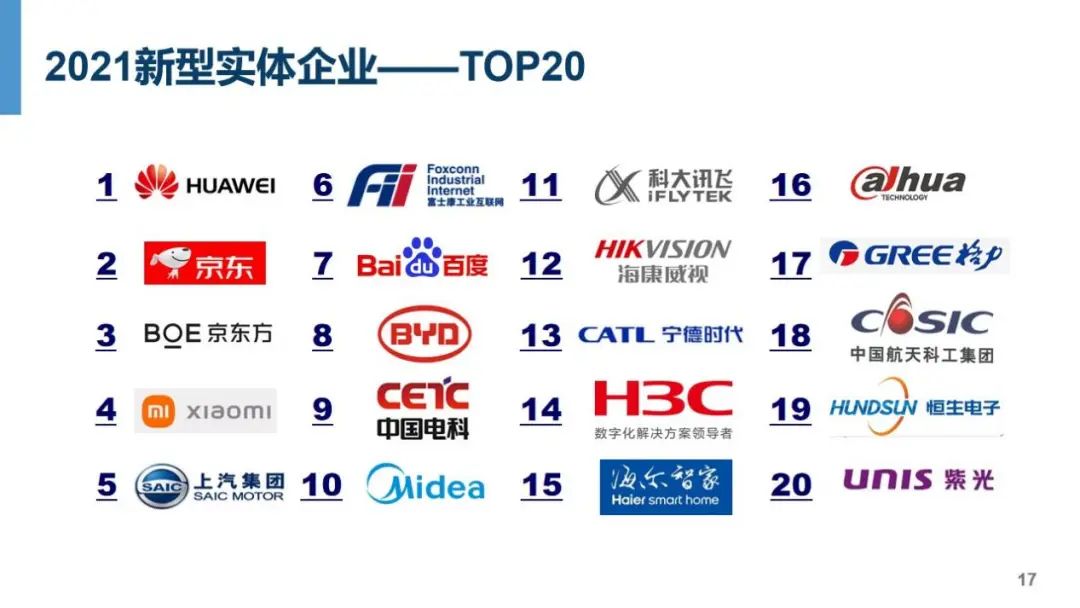 测评通过企业公开数据收集及自主填报,共选取1.7万家企业作为样本,通过科学测算,产生了2021新型实体企业百强榜单.。