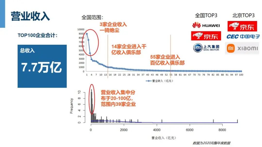 在营收方面,百强企业总营收7.7万亿,3家企业一骑绝尘。